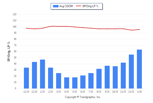 January 2026 Average Continuous Days on Market trend was Rising and Sold/Original List Price Ratio Remains Steady**