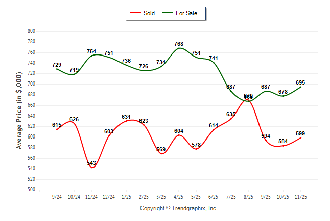 November 2025 Average For Sale Price was Neutral and Average Sold Price was Neutral**