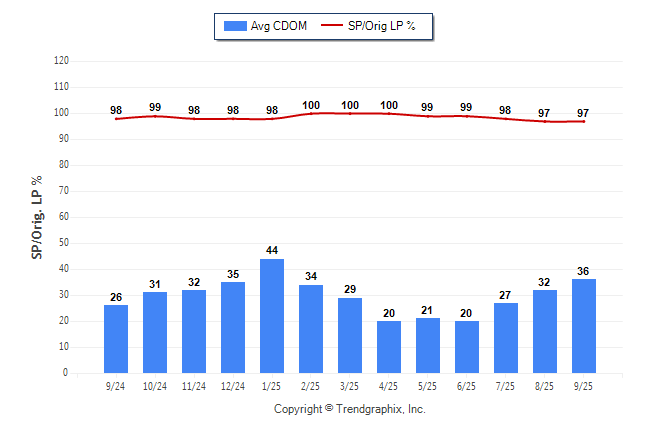 September 2025 Average Continuous Days on Market trend was Rising and Sold/Original List Price Ratio was Falling**