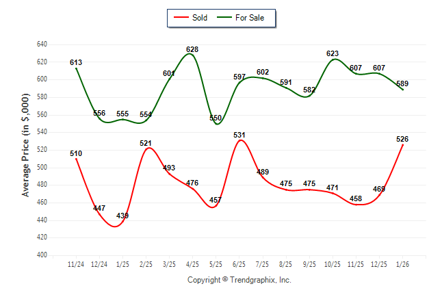 January 2026 Average For Sale Price was Neutral and Average Sold Price was Appreciating**
