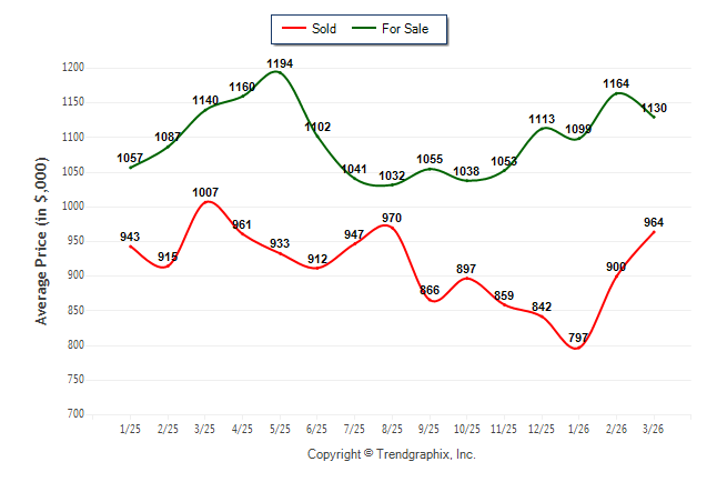 March 2026 Average For Sale Price was Neutral and Average Sold Price was Appreciating**