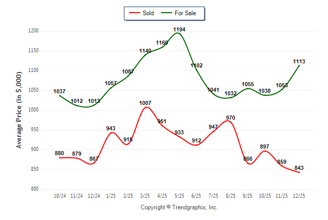 December 2025 Average For Sale Price was Appreciating and Average Sold Price was Depreciating**