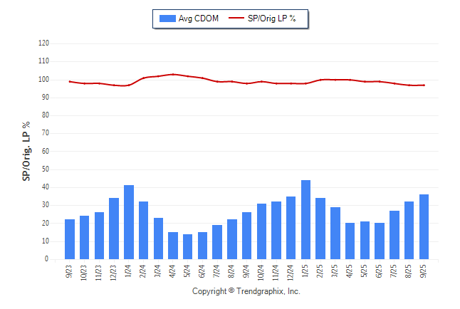 September 2025 Average Continuous Days on Market trend was Rising and Sold/Original List Price Ratio was Falling**
