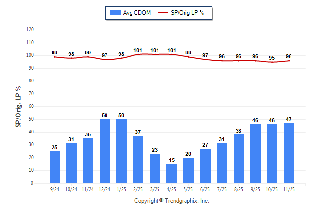 November 2025 Average Continuous Days on Market trend was Rising and Sold/Original List Price Ratio Remains Steady**