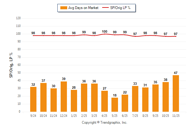 November 2025 Average Days on Market trend was Rising and Sold/Original List Price Ratio was Falling**