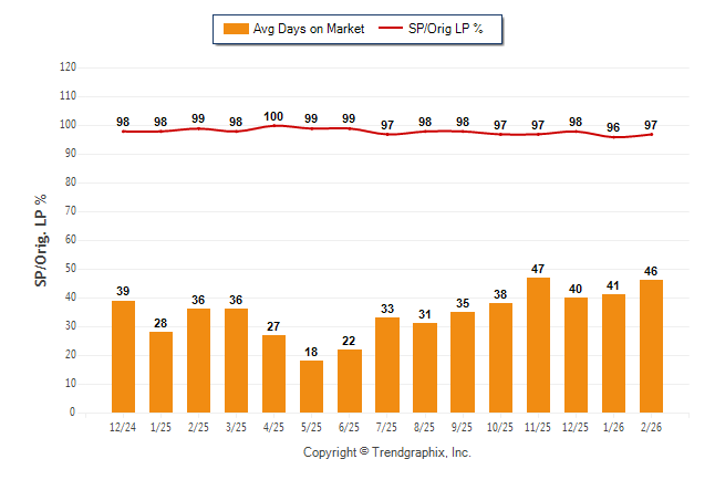 February 2026 Average Days on Market trend was Rising and Sold/Original List Price Ratio Remains Steady**