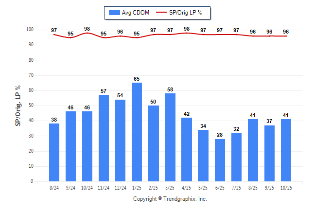October 2025 Average Continuous Days on Market trend was Rising and Sold/Original List Price Ratio was Falling**