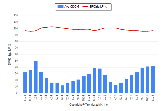 November 2025 Average Continuous Days on Market trend was Rising and Sold/Original List Price Ratio Remains Steady**