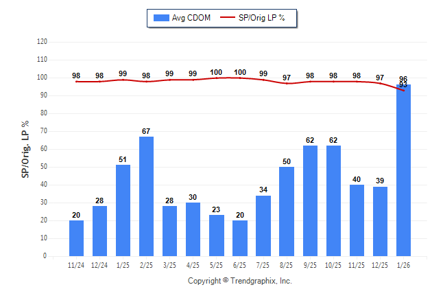 January 2026 Average Continuous Days on Market trend Remains Steady and Sold/Original List Price Ratio was Falling**
