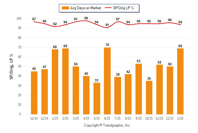 January 2026 Average Days on Market trend was Rising and Sold/Original List Price Ratio Remains Steady**