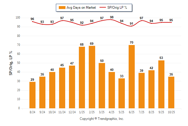 October 2025 Average Days on Market trend was Falling and Sold/Original List Price Ratio was Rising**