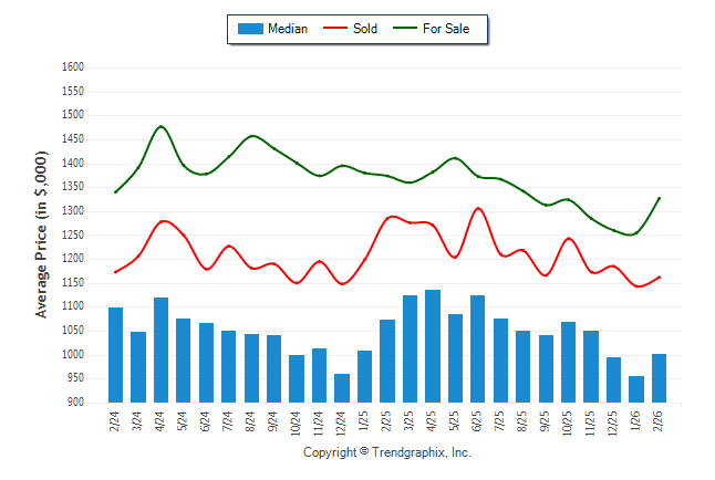 February 2026 Median Price was Neutral, Avg. For Sale Price was Neutral, and Avg. Sold Price was Neutral**