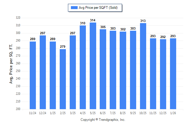 January 2026 Average Sold Price per Square Footage was Neutral**