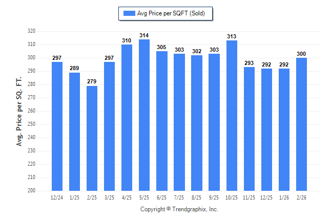 February 2026 Average Sold Price per Square Footage was Neutral**
