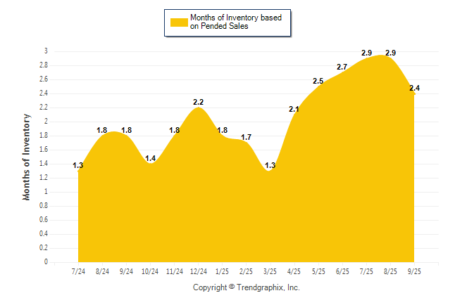 Curnt vs. Same Month 1 Yr Ago: Months of Inventory (Pended Sales)
