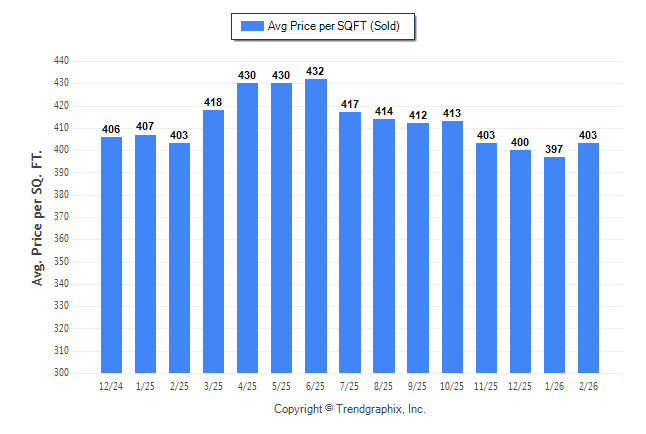 February 2026 Average Sold Price per Square Footage was Neutral**