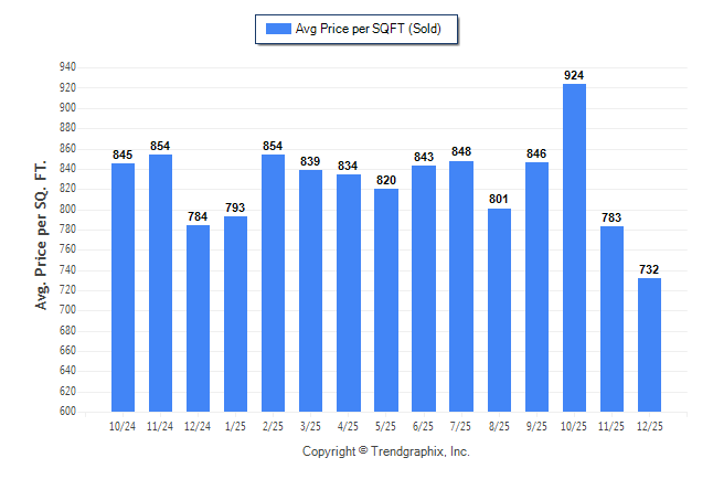 December 2025 Average Sold Price per Square Footage was Depreciating**