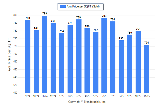 November 2025 Average Sold Price per Square Footage was Depreciating**