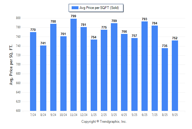 September 2025 Average Sold Price per Square Footage was Neutral**