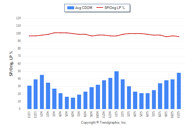 November 2025 Average Continuous Days on Market trend was Rising and Sold/Original List Price Ratio was Falling**