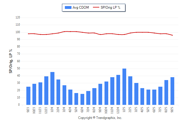 September 2025 Average Continuous Days on Market trend was Rising and Sold/Original List Price Ratio was Falling**