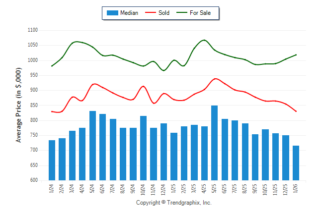 January 2026 Median Price was Depreciating, Avg. For Sale Price was Appreciating, and Avg. Sold Price was Depreciating**