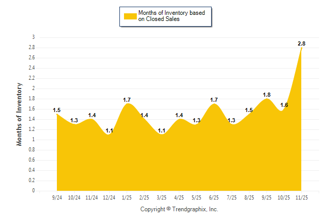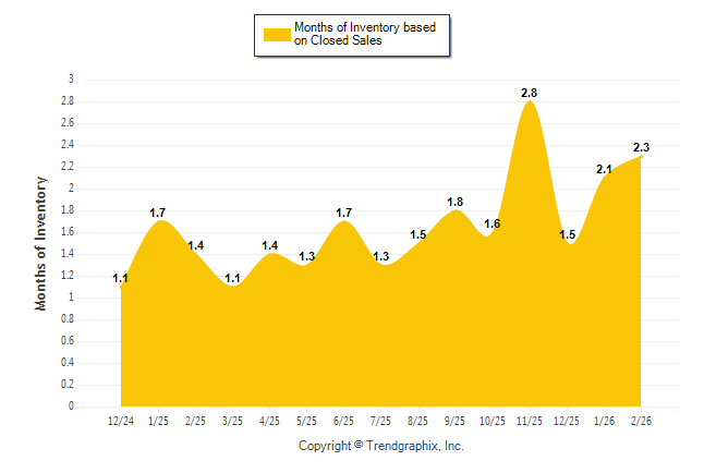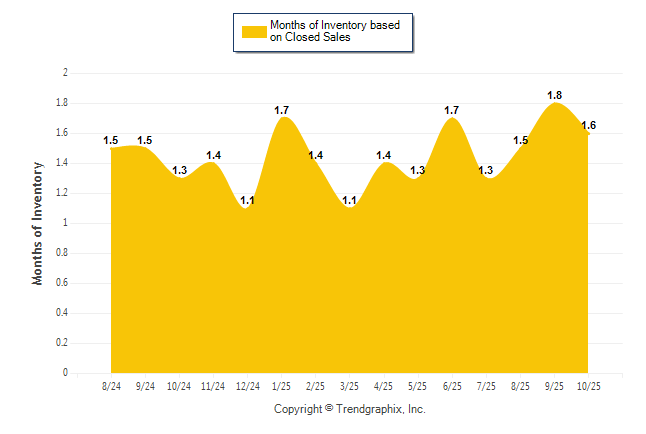 Curnt vs. Same Month 1 Yr Ago: Months of Inventory (Closed Sales)