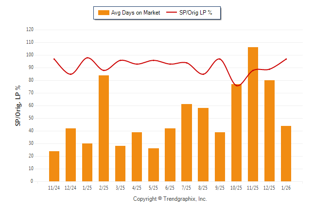 January 2026 Average Days on Market trend Remains Steady and Sold/Original List Price Ratio was Rising**