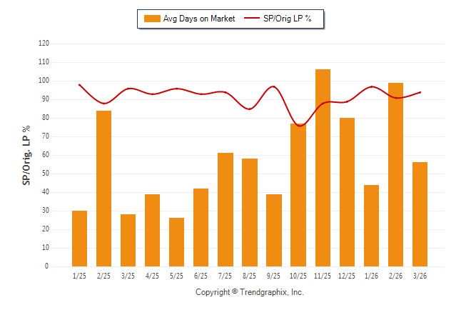 March 2026 Average Days on Market trend Remains Steady and Sold/Original List Price Ratio Remains Steady**