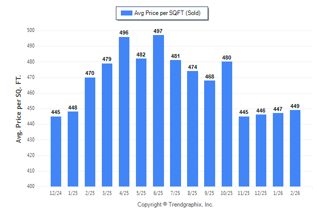February 2026 Average Sold Price per Square Footage was Neutral**