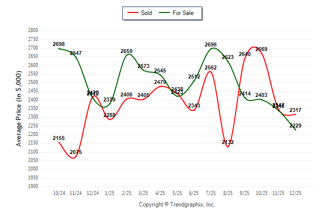 December 2025 Average For Sale Price was Depreciating and Average Sold Price was Neutral**
