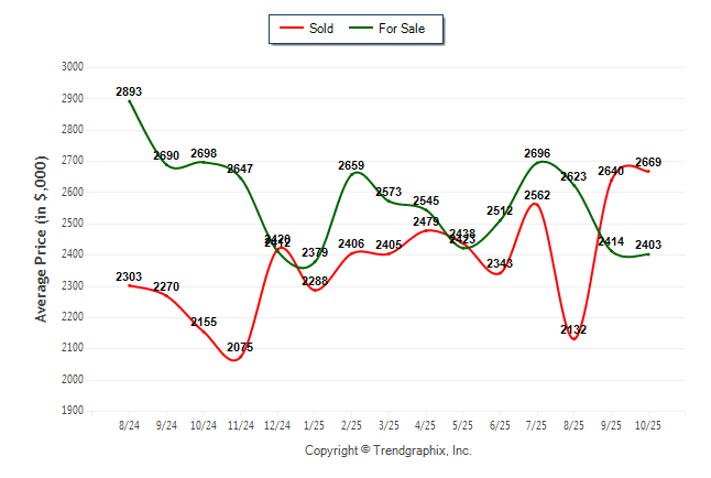 October 2025 Average For Sale Price was Depreciating and Average Sold Price was Appreciating**