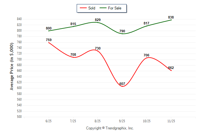 November 2025 Average For Sale Price was Neutral and Average Sold Price was Neutral**