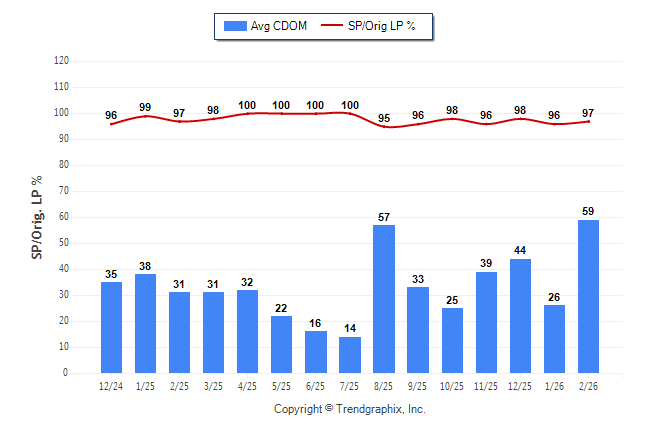 February 2026 Average Continuous Days on Market trend was Rising and Sold/Original List Price Ratio Remains Steady**