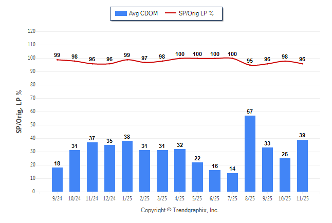 November 2025 Average Continuous Days on Market trend was Rising and Sold/Original List Price Ratio was Falling**