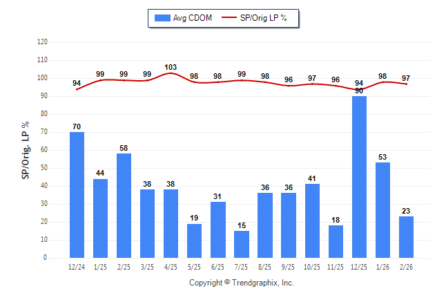 February 2026 Average Continuous Days on Market trend Remains Steady and Sold/Original List Price Ratio Remains Steady**