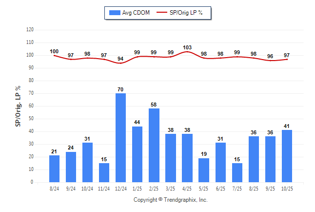 October 2025 Average Continuous Days on Market trend was Rising and Sold/Original List Price Ratio Remains Steady**