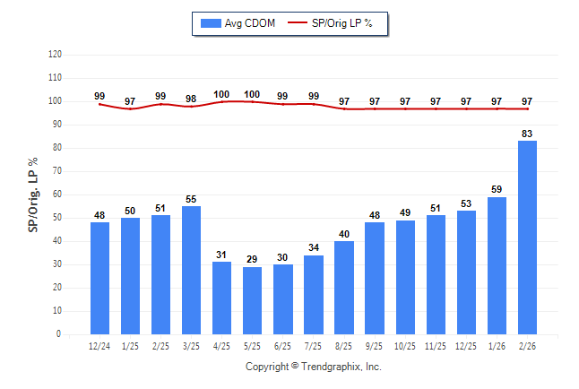February 2026 Average Continuous Days on Market trend was Rising and Sold/Original List Price Ratio Remains Steady**