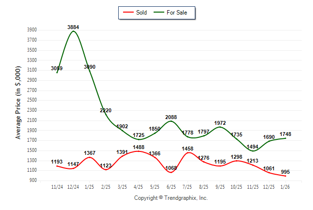 January 2026 Average For Sale Price was Neutral and Average Sold Price was Depreciating**