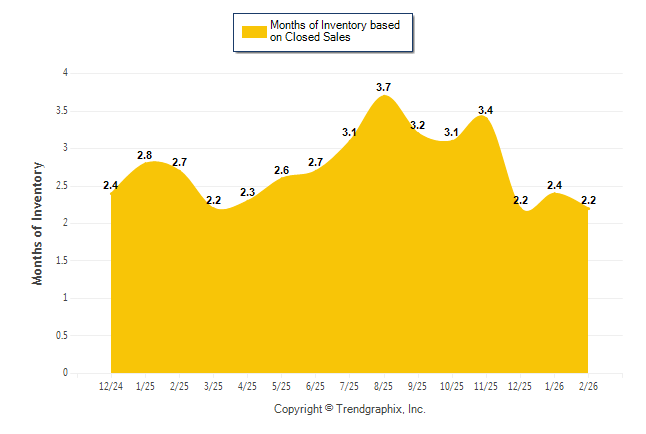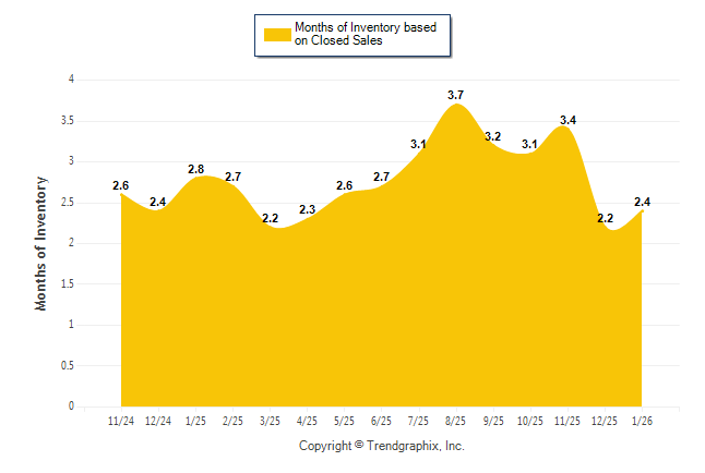 Curnt vs. Same Month 1 Yr Ago: Months of Inventory (Closed Sales)