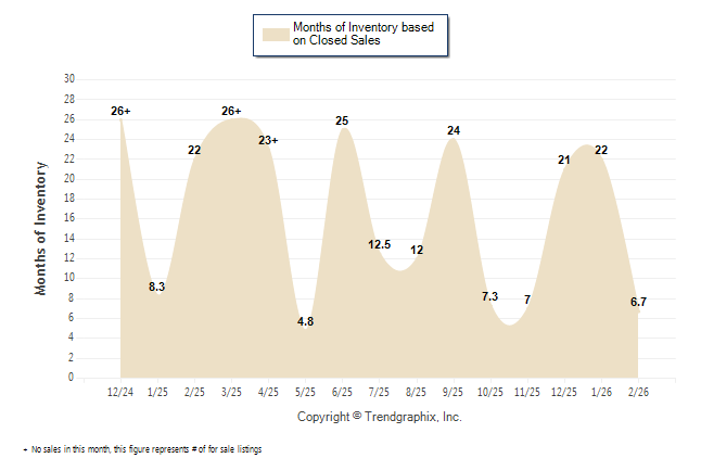 Curnt vs. Same Month 1 Yr Ago: Months of Inventory (Closed Sales)