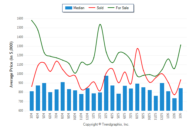 March 2026 Median Price was Neutral, Avg. For Sale Price was Appreciating, and Avg. Sold Price was Neutral**