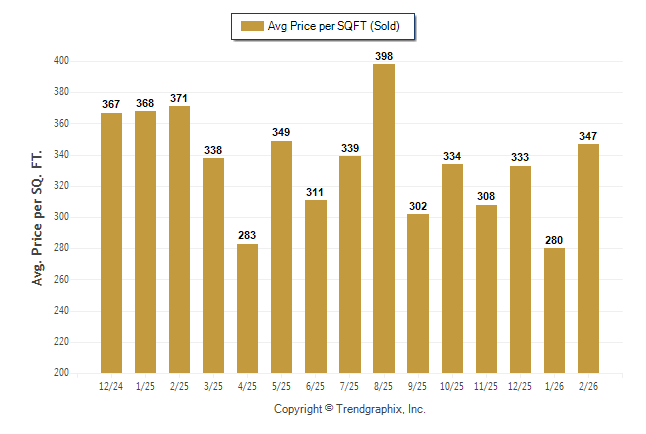February 2026 Average Sold Price per Square Footage was Appreciating**