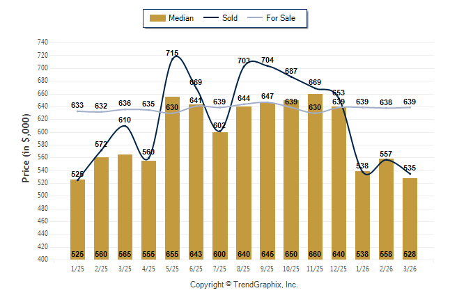 March 2026 Median Price was Depreciating, Avg. For Sale Price was Appreciating, and Avg. Sold Price was Depreciating**