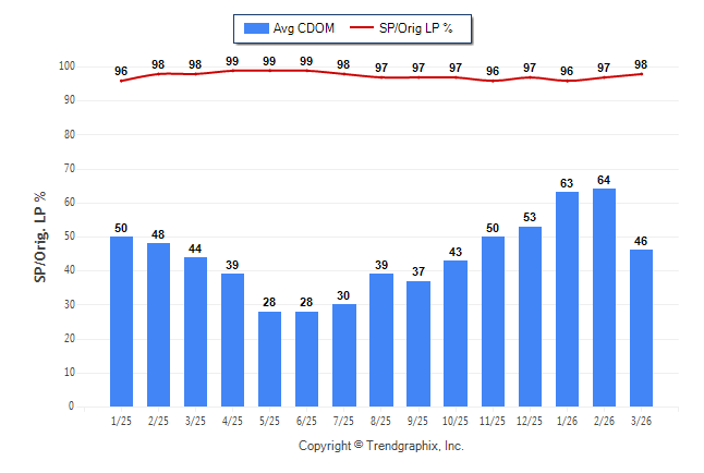 March 2026 Average Continuous Days on Market trend Remains Steady and Sold/Original List Price Ratio Remains Steady**