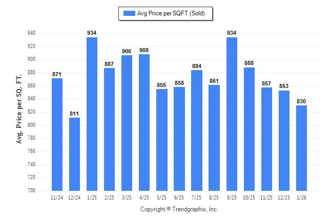 January 2026 Average Sold Price per Square Footage was Depreciating**
