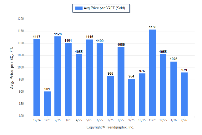 February 2026 Average Sold Price per Square Footage was Neutral**