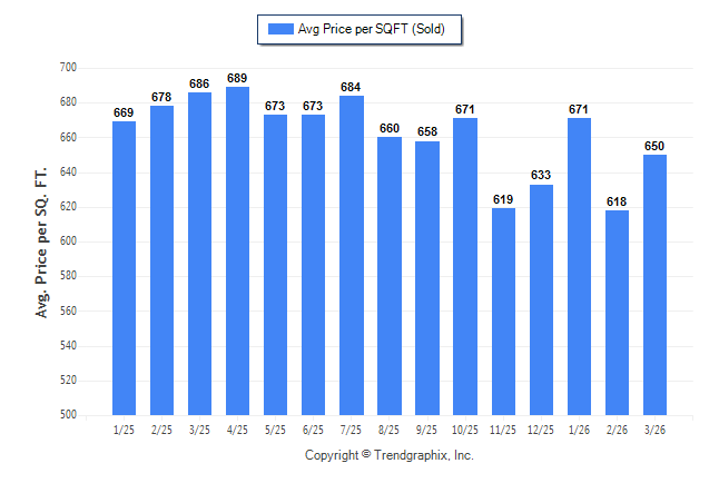 March 2026 Average Sold Price per Square Footage was Neutral**