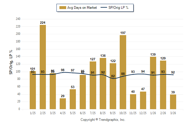 March 2026 Average Days on Market trend Remains Steady and Sold/Original List Price Ratio Remains Steady**