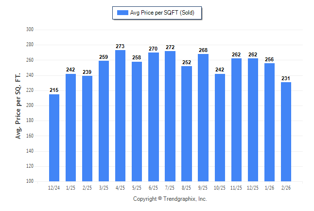 February 2026 Average Sold Price per Square Footage was Depreciating**
